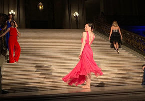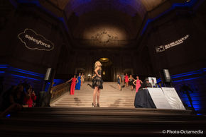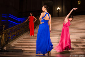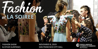 "For the first time, La Soirée 2019 was not just about wine and gastronomy, but also about fashion and sustainability! Displaying pure French elegance, the City Hall was illuminated by an amazing Fashion Show designed by two French women and entrepreneurs: Karen Tussiot from Les Parisiennes and Virginie Personne from Petits Pas. A beautiful combination of stunning dresses, an elegant choreography, gorgeous models (makeup by Marine Vaisset and hairstyling by Atelier Emmanuel) and so many other high fashion surprises..." (FACCSF)​